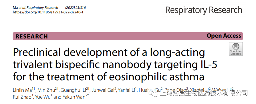 科研力量 I 凯发K8天生赢家一触即发生物长效IL-5纳米抗体研究成果于《Respiratory Research》发表!